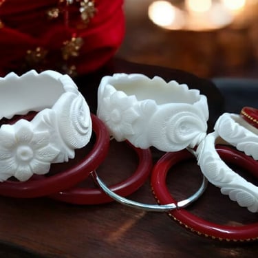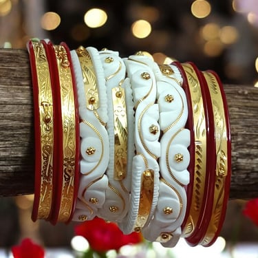 Handcrafted Sankha Pola bangles made from authentic conch shell and coral.